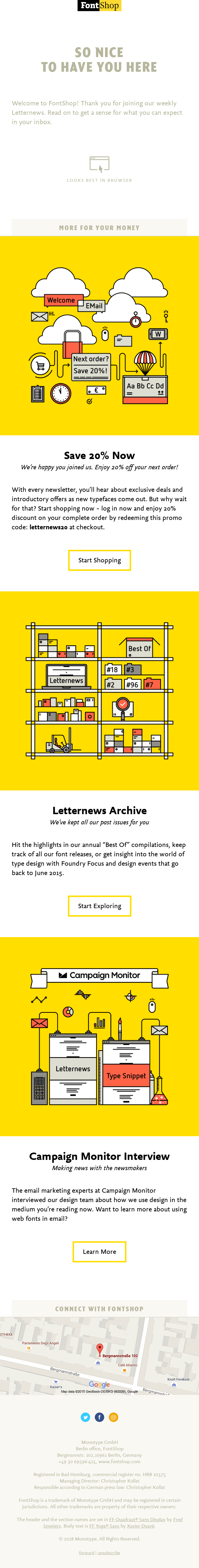 Check out the engaging way FontShop thanked new subscribers for signing up for its email newsletter. It’s more than a thank you, it builds anticipation for what’s to come, meaning those newsletters are unlikely to be ignored.